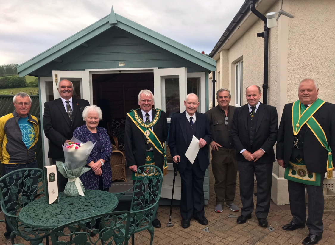 The recent presentation of his 50-year Certificate to Bro. Amos Lundie, M.M. of Lodge Moncreiffe No.1332 by Bro. Martin Kelly, RWM of 1332. Bro. JJR Logan, RWPGM of Perthshire East and IPPGM of Perthshire East, Bro. Ronnie Forbes.